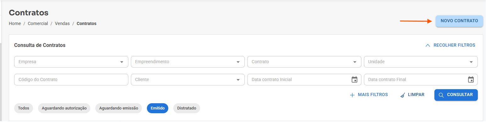 Caminho no sistema: Comercial > Vendas > Contratos > Contratos