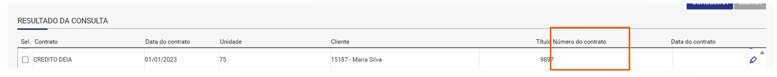 No resultado da consulta serão apresentados apenas os contratos do tipo Crédito Associativo. Selecione os contratos que deseja alterar a data em lote, adicione a data com a I.F.