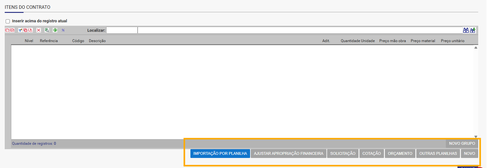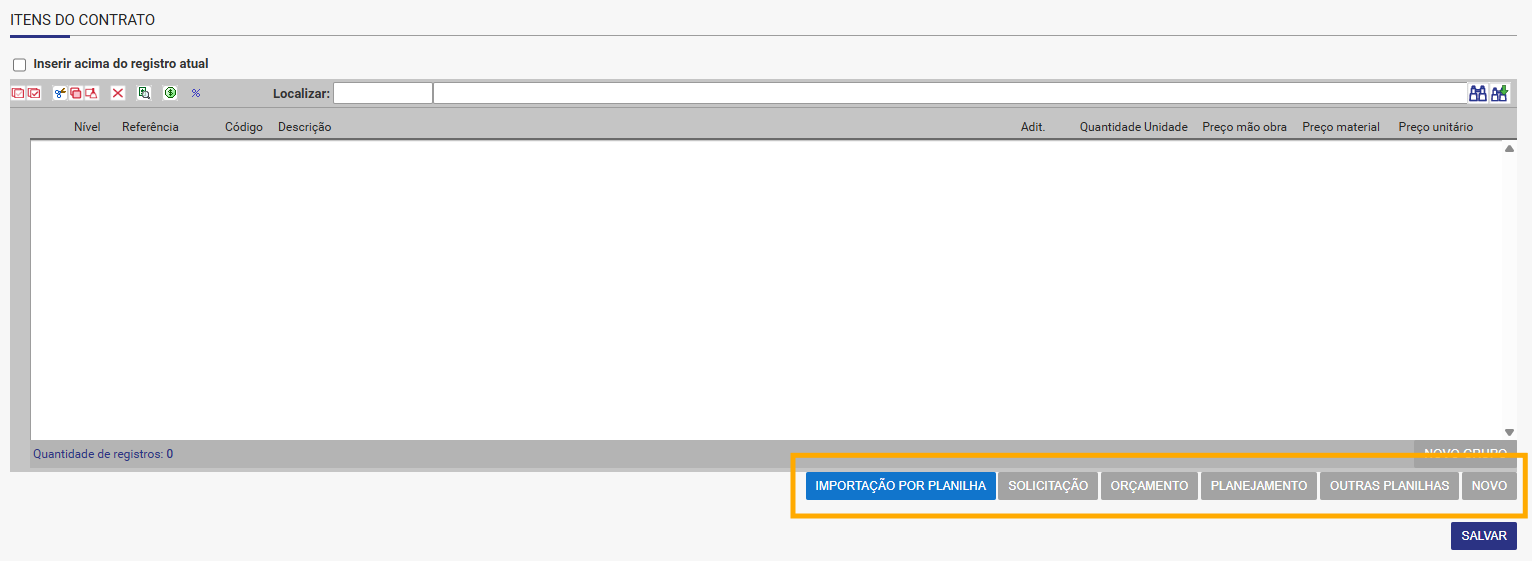 Outras Planilhas: Permite copiar os itens a partir de outros contratos.