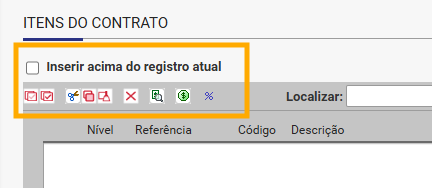 Para contratos de Serviços, podem ser utilizado os seguintes botões para inclusão de itens:
