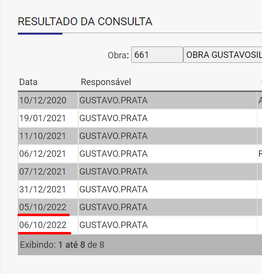 Neste caso, ele busca o registro de 05/10/2022. Caso não existisse Registro no dia 05/10/2022, o Sienge buscaria o próximo anterior, ou seja, não existindo o Registro de 05/10/2022, os dados a serem copiados seriam os de 31/12/2021.