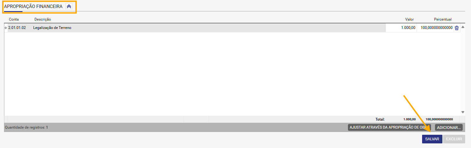 5. Determine em qual Conta Financeira será apropriada a despesa deste lançamento.