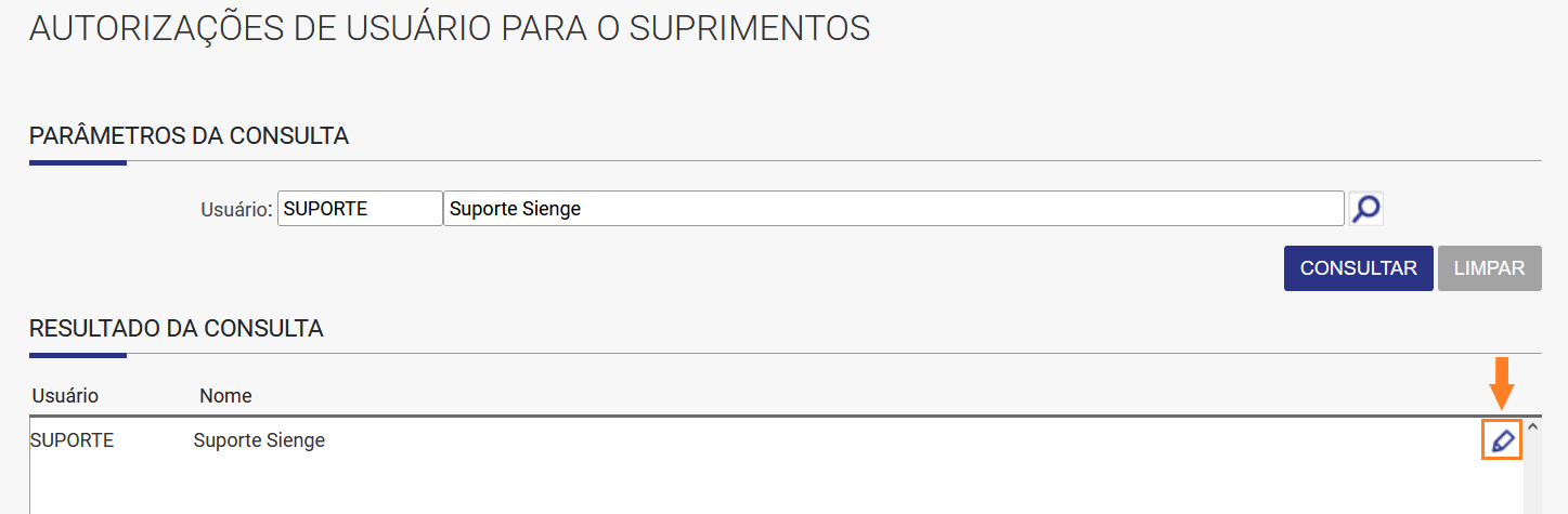 1. Acesse o menu Segurança > Autorizações > Usuários ou Perfis > Suprimentos.