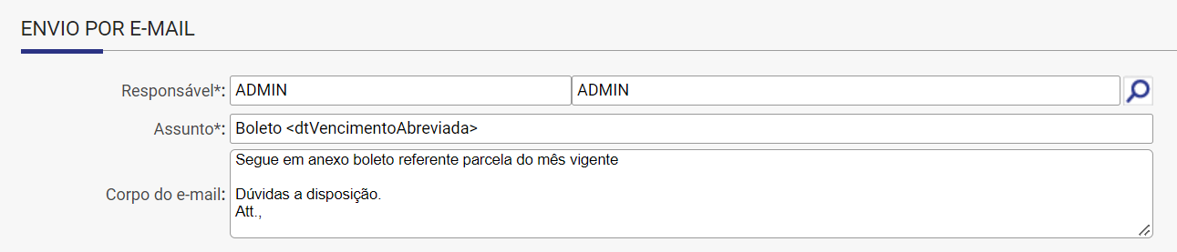 Dica! Note que os campos Assunto e Corpo do e-mail permitem, ainda, a mesclagem com as informações do módulo comercial.