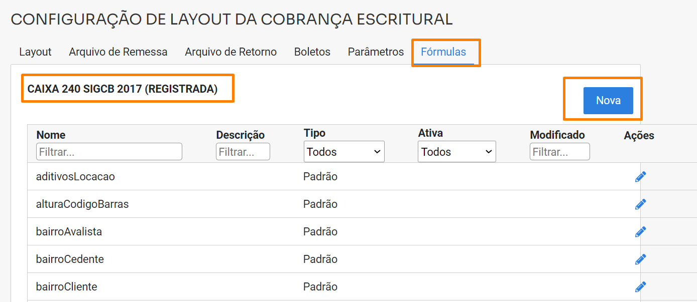 1.1- Acessando aba de Fórmulas, você conseguirá editar e criar novas fórmulas: