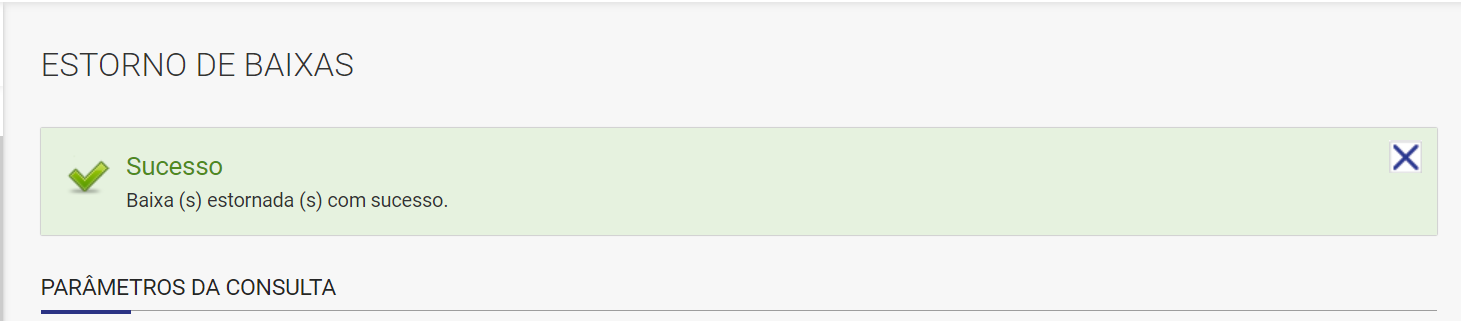 Dica! O estorno só poderá ser realizado com o valor integral da parcela, não é permitido estorno do valor parcial. Porém, é permitido o estorno total de uma baixa parcial.