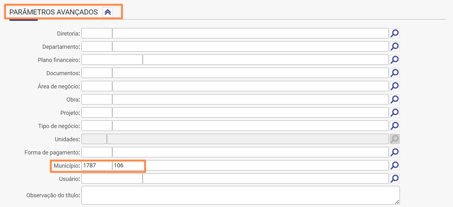 O campo para o filtro de município, encontrado nos parâmetros avançados dos relatórios de Contas Pagas e Contas a Pagar, irá apresentar o município que é informado no cadastro do Credor.