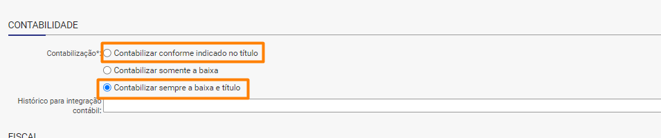 Nota! Se estiver marcado a opção "Contabilizar somente baixa" não irá contabilizar a provisão do título em questão.
