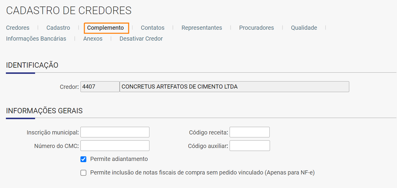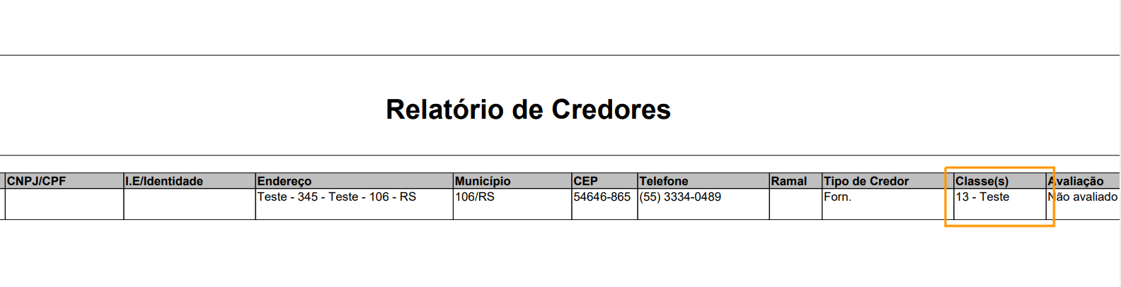 Atenção! As classes de credores são apenas dados informativos para visualização do credor e do relatório de credores, não seria possível gerar outros relatórios e filtrar somente pelas classes dos credores.