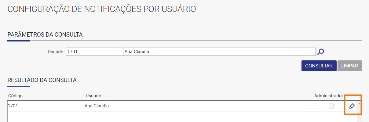 1. Após ativar a tarefa é necessário configurar qual usuário será notificado: Segurança / Administração / Mural de Avisos / Notificações / Por Usuário.
