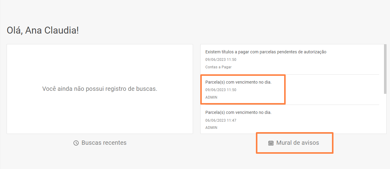 Após isso, o usuário será notificado com parcelas com vencimento no dia.