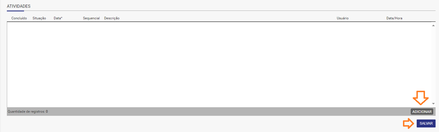 Clique no botão Salvar para confirmar o cadastro das atividades.