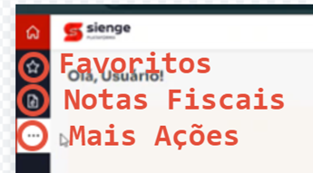 Nesta barra temos o ícone de favoritos (ícone de estrela), mostrando todos os itens em favoritos do usuário. Logo abaixo temos os módulos fixados/personalizados pelo usuário. Na imagem a seguir temos o módulo de notas fiscais (ícone de página) como exemplo.