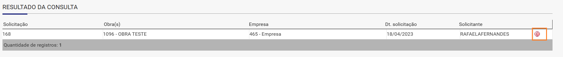 2. Após identificar a Solicitação de Serviço, clique sobre o ícone (