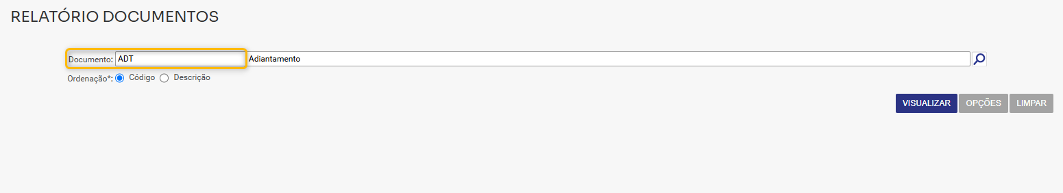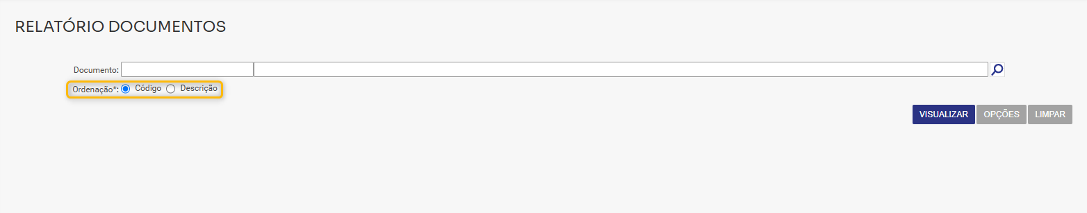 - No campo "Seleção do documento" poderá escolher um documento específico para gerar o relatório. Caso o campo não seja preenchido, o relatório apresentará todos os documentos cadastrados.