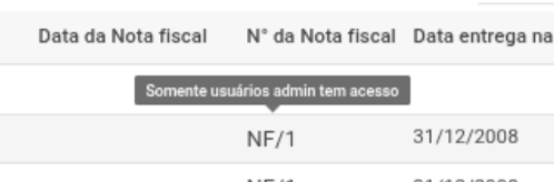 - Com o objetivo de reforçar a segurança e garantir a conformidade no acesso às informações de notas fiscais, o hiperlink para visualização do cadastro da nota está, disponível apenas para usuários administradores do sistema. Para os demais usuários (não administradores), o acesso ao link está desabilitado. Nesses casos, é exibida uma mensagem diretamente na coluna "Nº da Nota Fiscal", indicando a restrição de acesso.