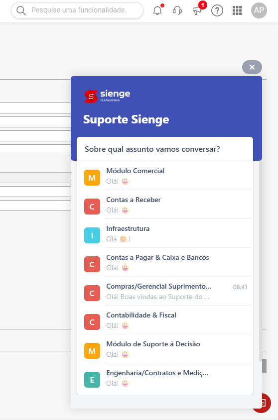 Dica! Antes de iniciar o atendimento, verifique o módulo em que necessita de ajuda, para direcionar suas dúvidas ao time correto e receber um atendimento mais eficaz. Conheça nosso Guia de Atendimento!