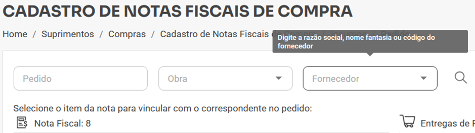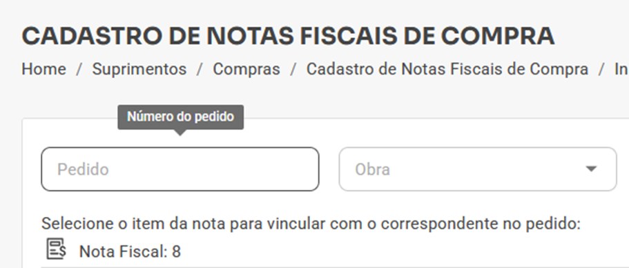 5. Mensagens Atualizadas nos Campos do Vínculo de Nota Fiscal com o Pedido de Compra