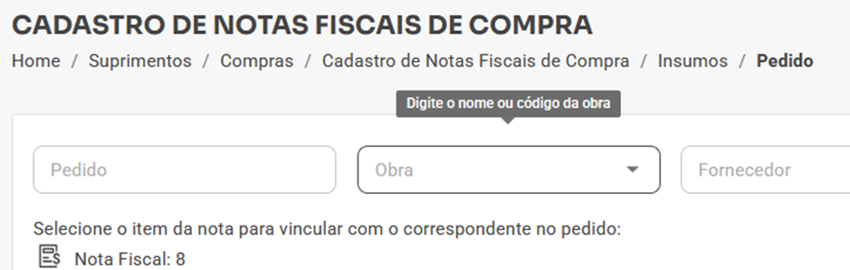 - Obra: Código e Descrição da Obra do pedido de compra.