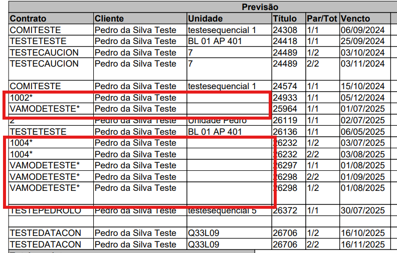 Porém caso o contrato seja distratado, as unidades deixarão de apresentar no Relatório de Controle de Comissões devido ao cancelamento do contrato. Sendo assim, o relatório é apresentado da seguinte forma: