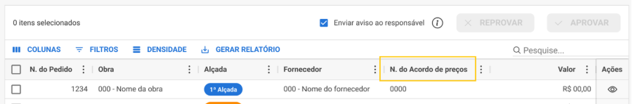 Como parte das melhorias implementadas, a listagem de resultados passa a exibir também o número do Acordo de Preço que originou cada pedido de compra.