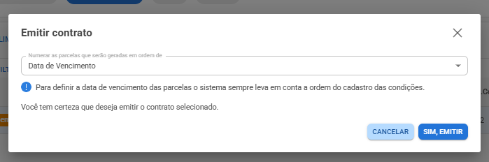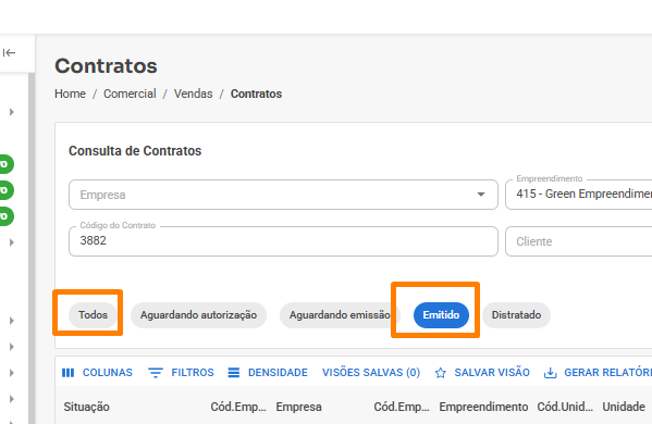 Dica! Após emissão o contrato aparecerá na aba Todos e na Emitido: