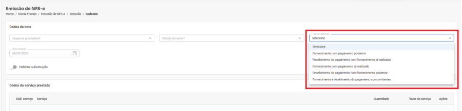 Preencher Tipo de Operação, se necessário.