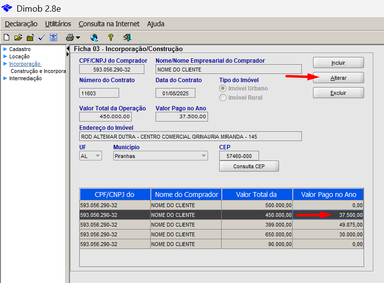 Caso o valor a ser declarado na Dimob precise ser diferente do valor gerado pelo arquivo do Sienge, é possível ajustar dentro do arquivo de texto (txt) ou, dentro do aplicativo da DIMOB. Neste artigo vamos ensinar como alterar no aplicativo da DIMOB.