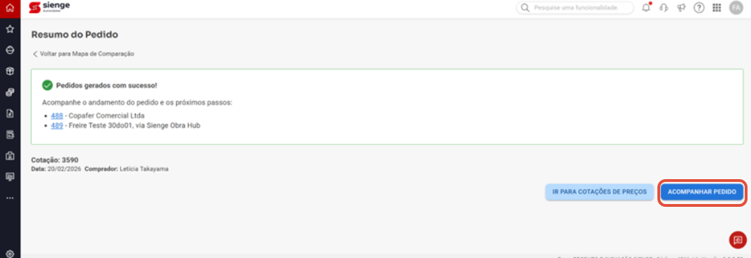 Os pedidos gerados ficarão disponíveis para acompanhamento.