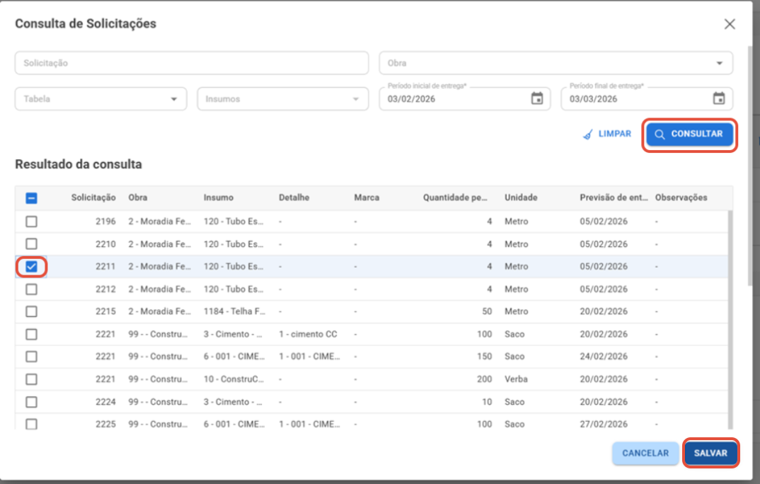 Dica! Use esta opção quando os itens já tiverem sido solicitados previamente no sistema.