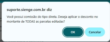 3. Ao retornar pra aba de "Cadastro" e marcar novamente a flag "Editar parcelas" será exibida a seguinte mensagem: