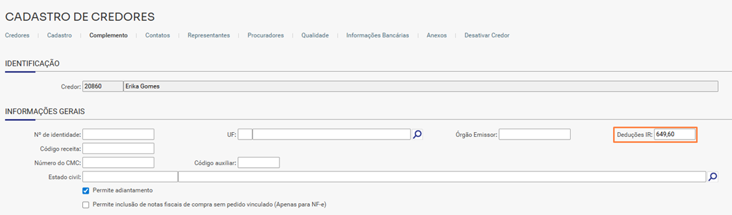 - Preencha o campo Deduções IR