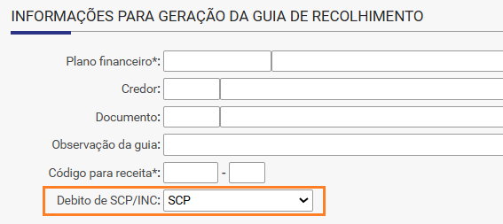 - Nas informações para guia de recolhimento, configure o tipo como: SCP.